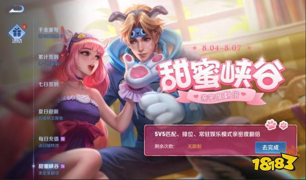 峡谷开启甜蜜模式,活动期间与好友参与指定模式对局亲密度翻倍!